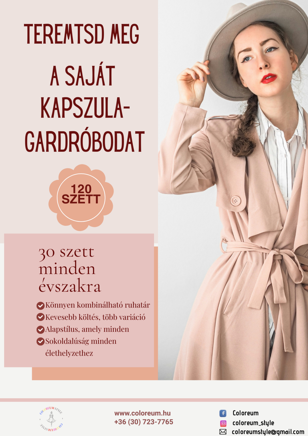 A Gardrób Detox módszerem nemcsak a ruhatáradban teremt rendet, hanem a gondolkodásodat is átformálja. Arra tanít, hogy a gardróbod ne csak praktikus legyen, hanem a legjobb verziódat tükrözze – olyanná váljon, amelyben bárhol és bármikor önmagad lehetsz.